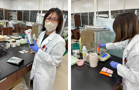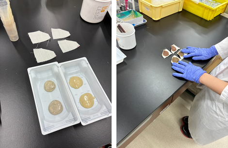 「例えば、染毛試験や染布試験では、良品ロットと差がないことを確認し、染め上がりに問題がないことを確認し、合格判定しています!」