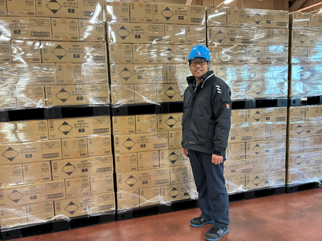 また、東日本大震災の時に、お取引先様の倉庫内で、揺れによって多くの荷物が崩れたという話を伺いました。そこで、それ以後は倉庫内で保管する際には全ての製品、材料にラップフィルムを巻いています。