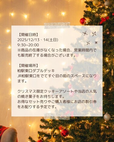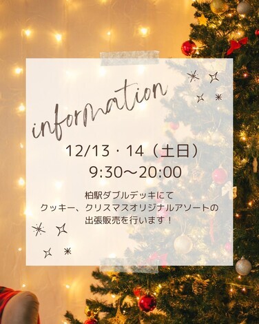13日土曜日と14日日曜日に柏駅ダブルデッキにて焼き菓子の出張販売を行うとのことです!!