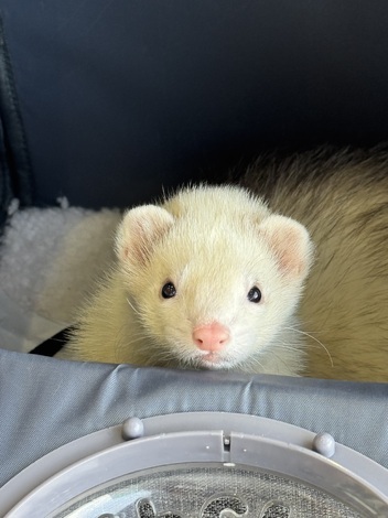 ボスくん!耳掃除ってわかってないから順番待ちでウキウキ笑笑キャリーの中の空気の入れ替えで開けたら顔出してくれました🫶この後、耳掃除で不貞腐れました笑笑