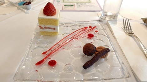 受付後、テーブルに着席するとケーキとチョコレートが!コーヒーをいただきながら午後のティータイムを満喫