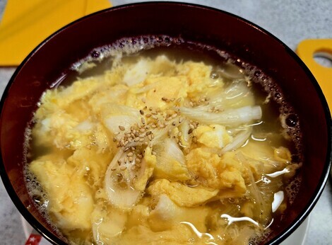 お夜食ですが、シンプルがおいしい卵とじうどんで、元気をチャージです🐭🎈