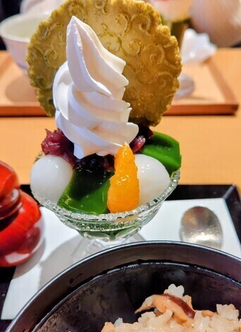ランチに抹茶のミニパフェがついてました。