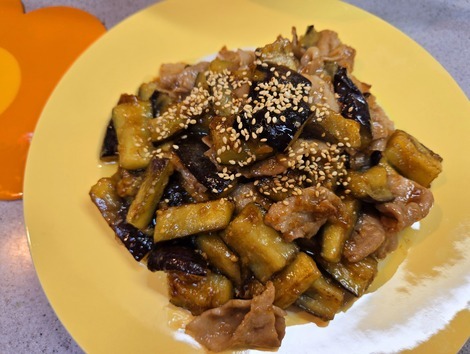 朝からがっつり白🍚と茄子と豚肉のみそしぎが元気のモトです🐭🎈