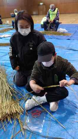 厳寒の朝、用水路の雑木、雑草の駆除をしてます。また、正月を前に、しめ縄作りを子供たちに教えています。8月に稲を青田刈りし保管してます。事前準備が大変です。子供たちの生き生きとした目に救われます。