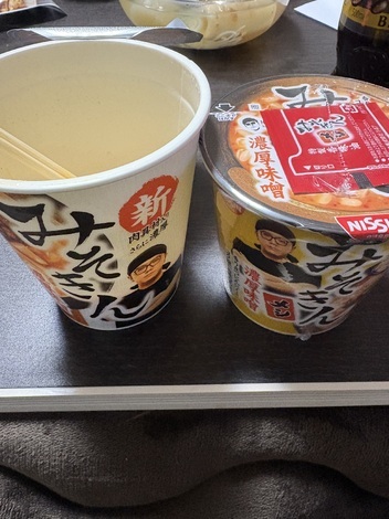 今更ですがみそきんがコンビニに売ってたので買ってみました!ラーメンの方から先に食べたのですが美味しかったです!もうひとつの方は次回