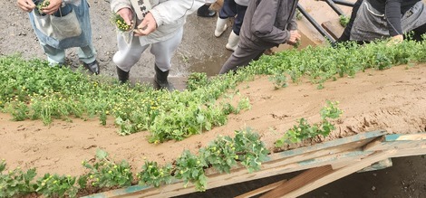 挿し芽を作るチームと挿し芽を土に挿していくチームに分かれて作業します。