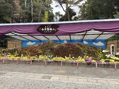 再建時の御社殿を中心とした境内を、小菊の挿し芽約3万本と大小の菊約50鉢を用いて精妙に表現される、とのことです。