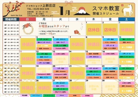 1月のスマホ教室予約スタートしました📅🎍🐎