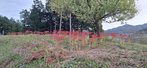 公民館の裏でひっそり咲いてました桜 彼岸花満開です