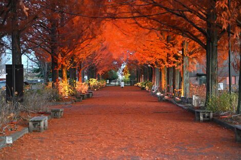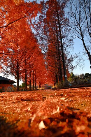 実は葉が落ちていたので、通路も葉が埋め尽くされていていい感じの写真が撮れました。