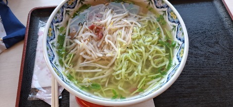 西方道の駅で初めて食べたラーメンメンにニラが入っているので 淡いグリーン色です スープ全飲みしちゃいました😆😋