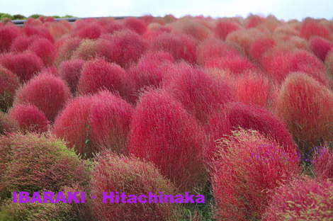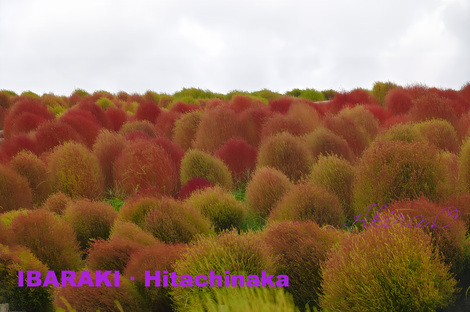 ひたち海浜公園のコキアは見に行ったことが無かったので、天気が良くなかったのですが行ってみました。