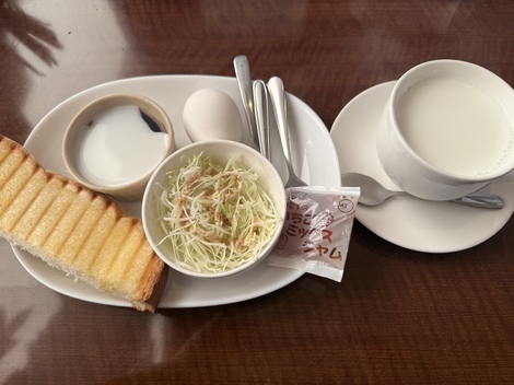 モーニングへ行ってきました☕️写真は、パングラタンモーニングとハーフモーニングです🍞食パンはおかゆに変更もできます🙌個人的にはハーフでもお腹いっぱいに