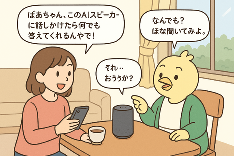 ねおぽん:「ばぁちゃん、このAIスピーカーに話しかけたら何でも答えてくれるんやで!」