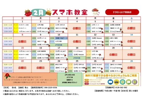 2月スマホ教室スケジュールのご案内です📅