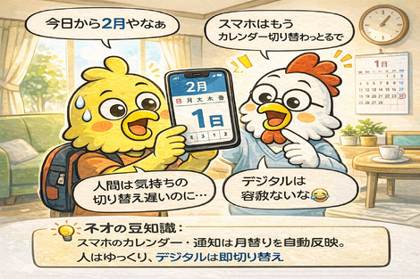 ネオ「スマホはもうカレンダー切り替わっとるで」