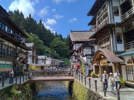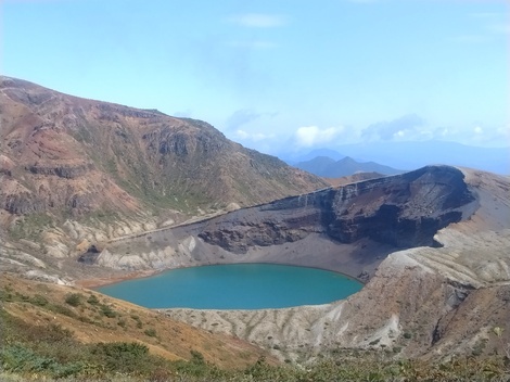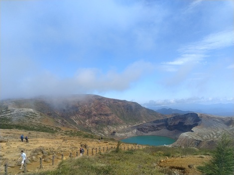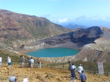 澄んだ空に蔵王の御釜、冷やされたスイカ、温泉街。
