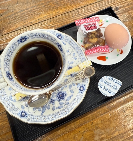 コーヒーと名古屋コーチンのゆで卵がついてきます😆