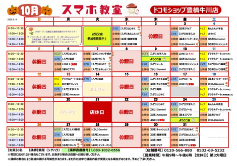 🎃10月 スマホ教室スケジュール🎃