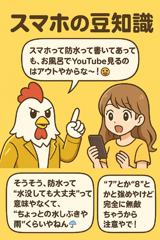 ネオ「ちなみに防水性能は“IP◯◯”って数字で表されてて、iPhoneもAndroidもモデルによって違うんや📊」