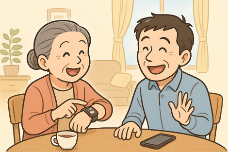 ねおばぁ:「これなぁ、“スマートウォッチ”言うて、わしの心拍数とか睡眠とか、ぜーんぶ見張っとるんやで!」