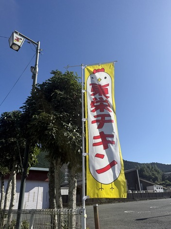 駐車場には、可愛らしいのぼり旗が立っています🐔🌟