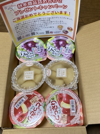 食べ物は、今年は肉が合わせて2.5kg、昨年は毛ガニ、高級葡萄とか自分では買わないモノが毎年食えます。お米数キロとか細かい食べ物は毎週数回来るので、食費にかなーり貢献します。今はホテルのランチビュッフェも日程検討中です。