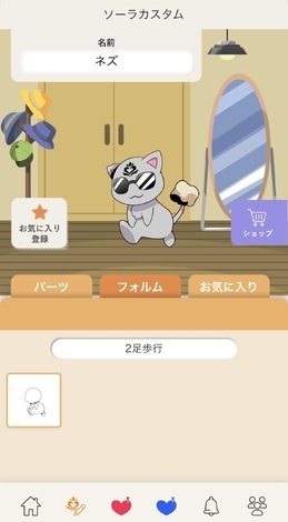 アプリ内でご自身のアバター「ソーラ」がつくれます。朝散歩をしたり日記投稿をするとアプリ内通貨「ジェム」が貯まります。「ジェム」を使って「ソーラ」のパーツをゲットしたり、「ソーラ」をお好みにカスタマイズして楽しむこともできます。