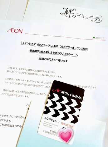 コミュニティオープン記念「映画館で観る楽しさを語ろう♪キャンペーン」に当選してイオンシネマ無料鑑賞券をいただきました✨ありがとうございます!