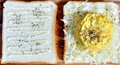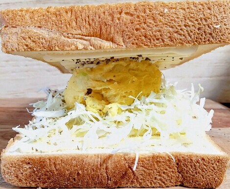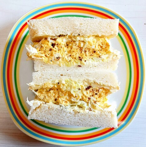 マグカップに卵1個、マヨ大さじ1、鶏ガラスープの素大さじ1、ヨーグルト大さじ1、600wで1分x3回 ⇒ レンチン玉子をパンに乗せてサンドウィッチ✌️😆