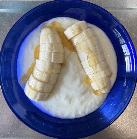毎日の日課、バナナ入りヨーグルトに、ハチミツをかけて食べました。