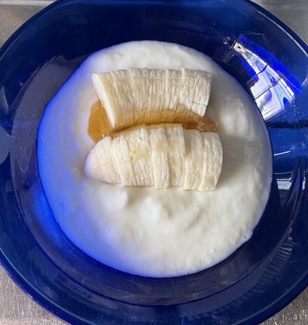 毎日の日課、バナナ入りヨーグルトに、ハチミツをかけて食べました。
