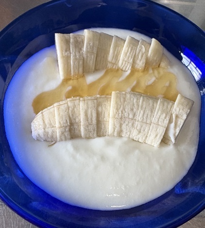 毎日の日課、バナナ入りヨーグルトに、ハチミツをかけて食べました。