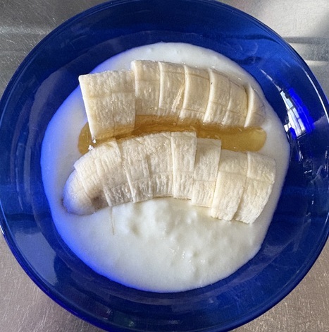 毎日の日課、バナナ入りヨーグルトに、ハチミツをかけて食べました。
