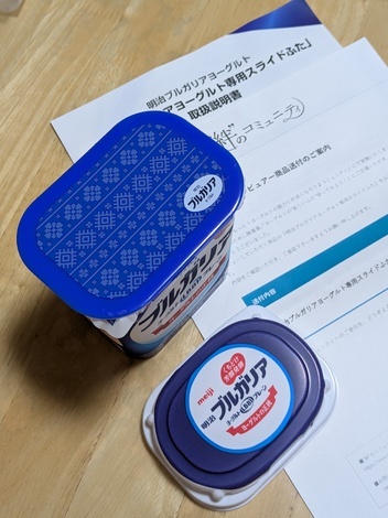 「明治ブルガリアヨーグルト専用スライドふた」届きました☺️有難うございます