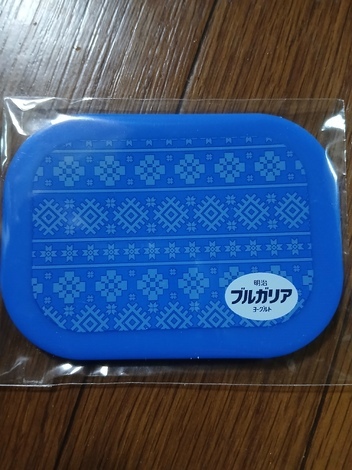今日、ブルガリアヨーグルトのふたが届きました。意外と、薄い厚さで、ブルガリアヨーグルトのカラーの青色が綺麗な、可愛いふたですね。