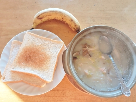 トースト、ミルクスープ、バナナ