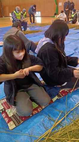正月を前に子供たちとしめ縄づくりをしました。真剣な表情がいいですね。