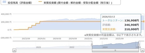 旧積立NISA時代、年間投資額最大40万円と低かった事もあり、積立投資している事すら忘れていました、新NISAが始まり久し振りに証券口座を開いたところ資産が倍以上に育っていました。