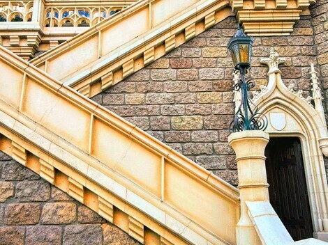 「シンデレラのフェアリーテイル・ホール」の最後に下りてくる、外階段です🏰🪜