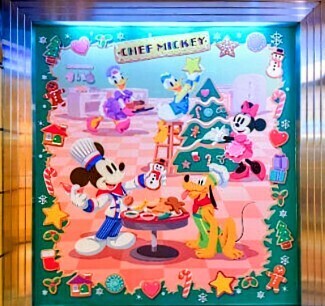 アンバサダーホテル内「シェフ・ミッキー」前のイラストが、クリスマス仕様になっていました!!