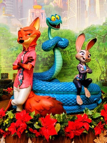 イクスピアリ2階セレブレーション・プラザ(光の階段)の、ジュディとニックと、ゲイリーです!🐰🦊🐍