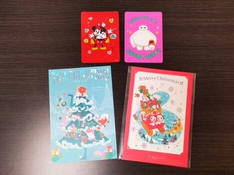 ポストカードは、右側はディズニーストアクラブ会員限定でプレゼントされるもので、デジタルクリスマスカードを提示すると頂ける、スペシャルデザインのクリスマス限定ポストカードです🎄✨️