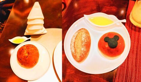 因みに写真の右側は、エメラルドになる前の「“ディズニー・クリスマス”スペシャルディナー」で提供されたパンです。