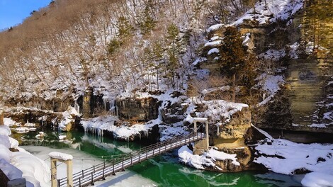 福島、あまり行ったことがなかったのですが、本当に魅力的でした。唯一“赤瓦”の天守を持つ「鶴ヶ城」や、茅葺屋根の江戸時代の街並みを残す「大内宿」や(ネギをお箸の代わりにして頂く「ねぎそば」も面白かったです)、芦ノ牧温泉駅の猫の駅長さんも可愛かったですし、断崖と奇岩怪石の「塔のへつり」も、大歩危峡に勝るとも劣らない景勝地でした(ちょうど4年前の写真です)🏯🐈️