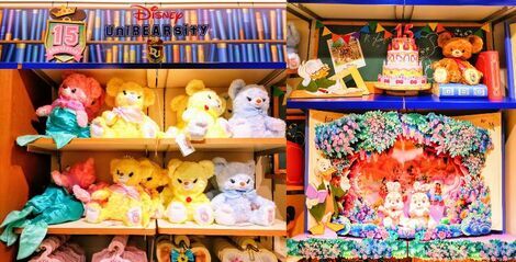 ディズニーストア 東京ディズニーリゾート店の一画に、ディズニーストアオリジナルキャラクター「UniBEARsity(ユニベアシティ)」15周年お祝いコーナーがありました🧸💐