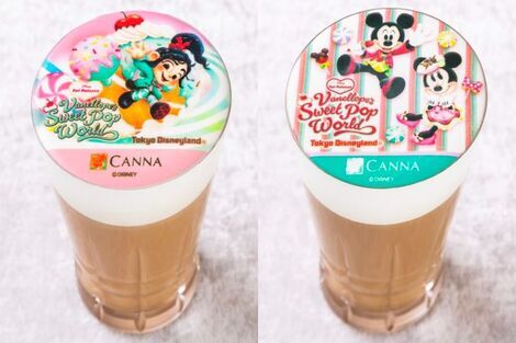 キャンディー型のチョコレートやドーナツ、カラーシュガーなどが乗っていて、どちらもヴァネロペの世界観が感じられるドリンクですね☆