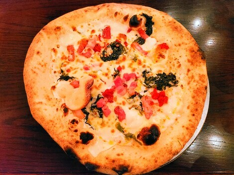 カナレットで「シェフおすすめのピッツァ」(パンチェッタとチーマ・ディ・ラーパのピッツァ)をオーダーしたら、ちっちゃなミッキーが乗っていました('▽'*)🍕🇮🇹