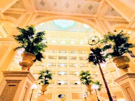 ディズニーホテル随一の高さ・広さを持つロビーで、天井高は30m!